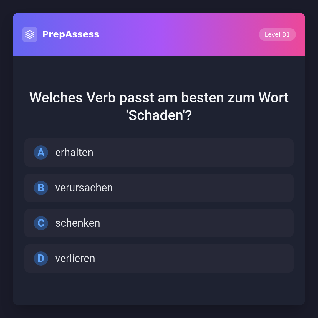 Welches Verb passt am besten zum Wort 'Schaden'?