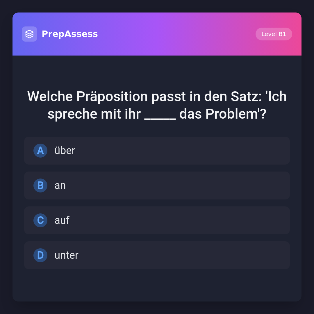 Welche Präposition passt in den Satz: 'Ich spreche mit ihr _____ das Problem'?