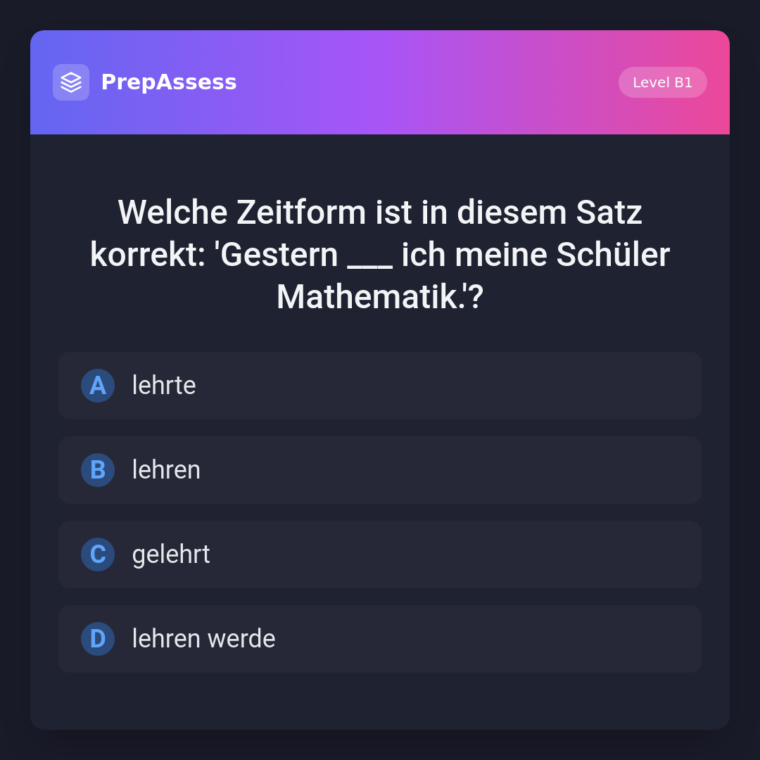 Welche Zeitform ist in diesem Satz korrekt: 'Gestern ___ ich meine Schüler Mathematik.'?