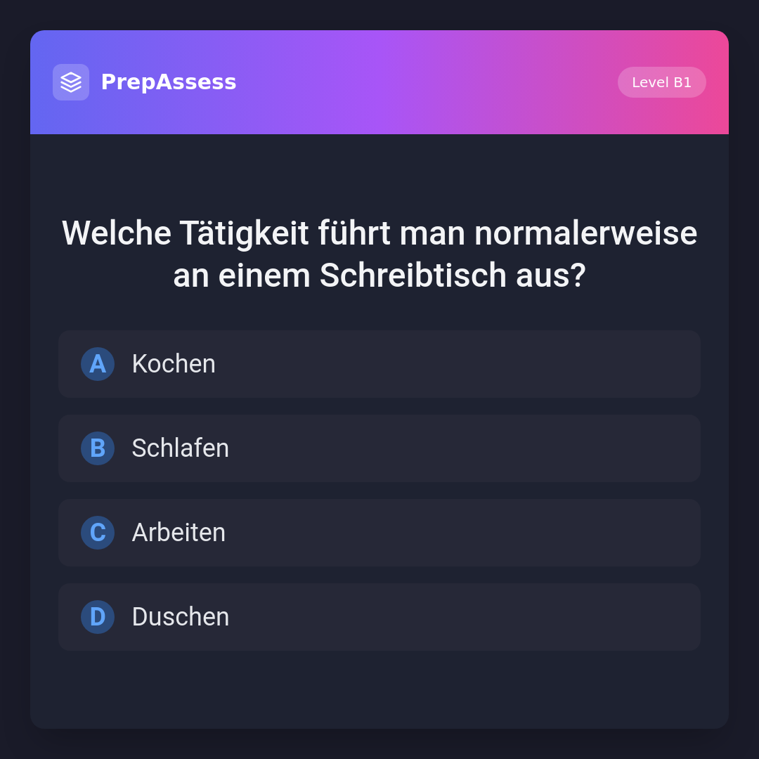 Welche Tätigkeit führt man normalerweise an einem Schreibtisch aus?
