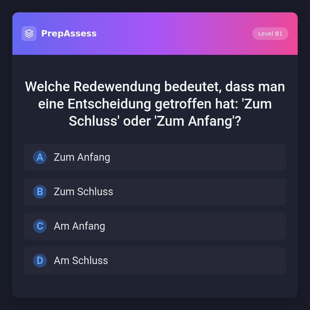Welche Redewendung bedeutet, dass man eine Entscheidung getroffen hat: 'Zum Schluss' oder 'Zum Anfang'?
