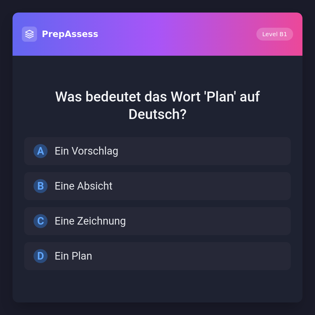 Was bedeutet das Wort 'Plan' auf Deutsch?