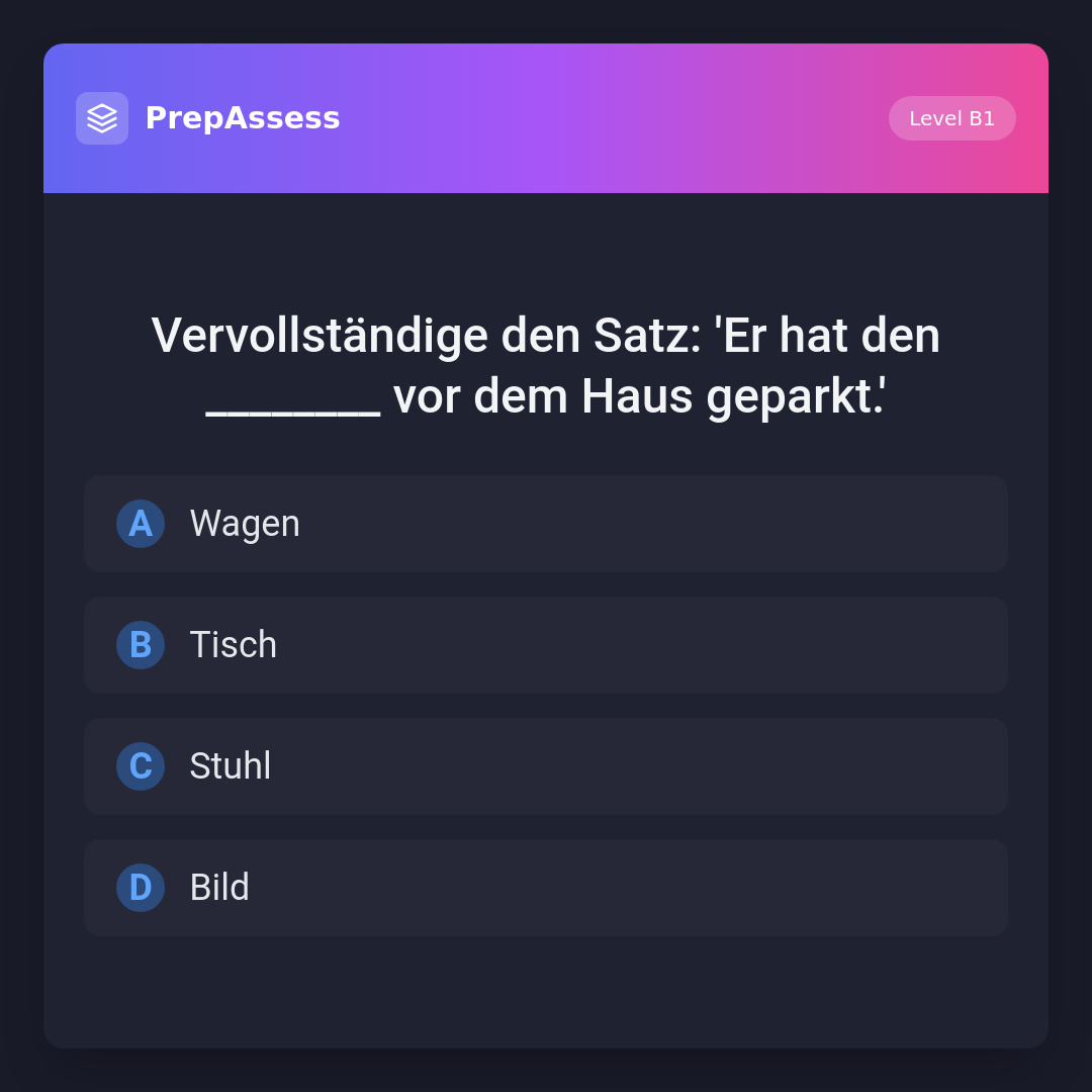 Vervollständige den Satz: 'Er hat den ________ vor dem Haus geparkt.'