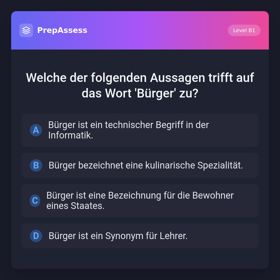 Welche der folgenden Aussagen trifft auf das Wort 'Bürger' zu?