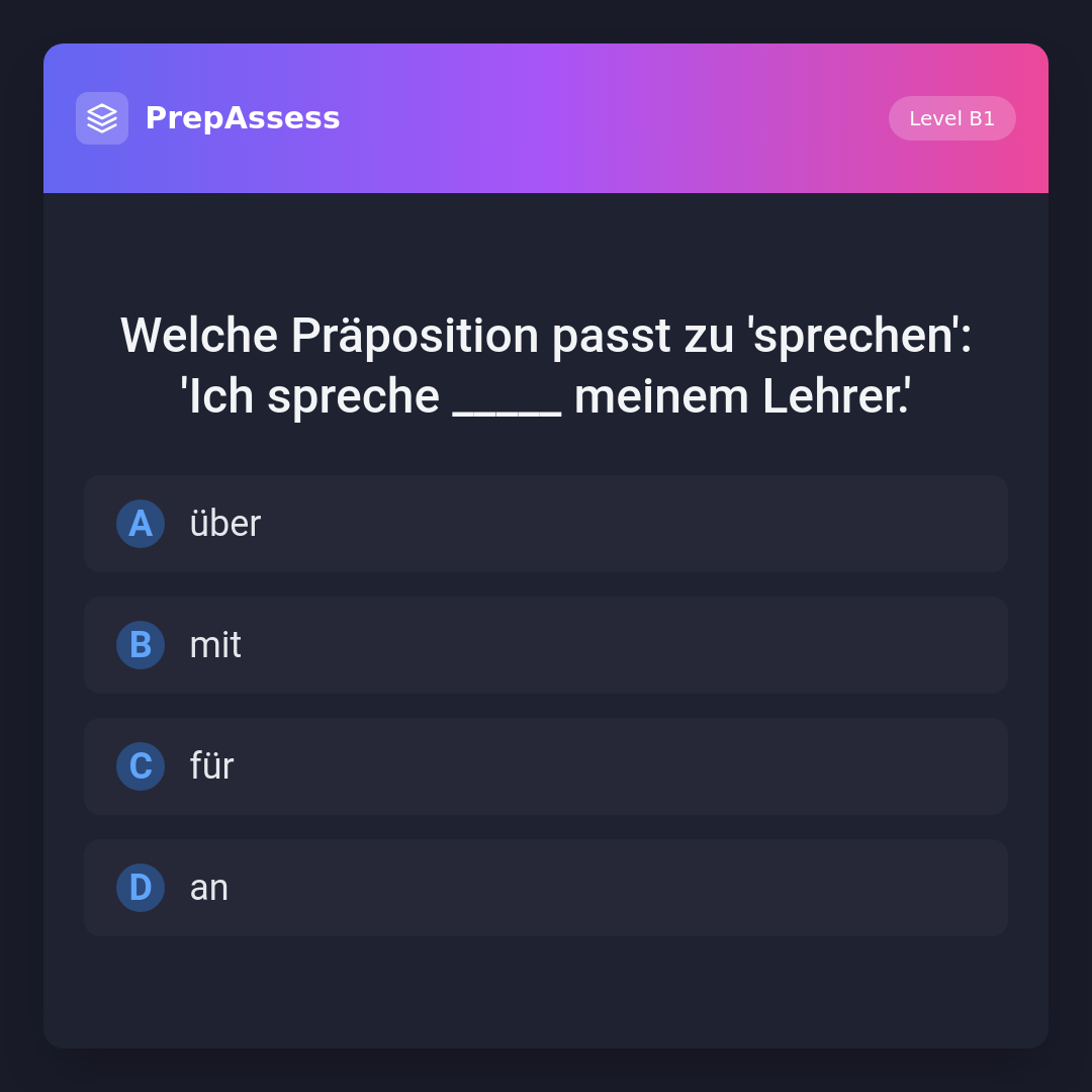 Welche Präposition passt zu 'sprechen': 'Ich spreche _____ meinem Lehrer.'