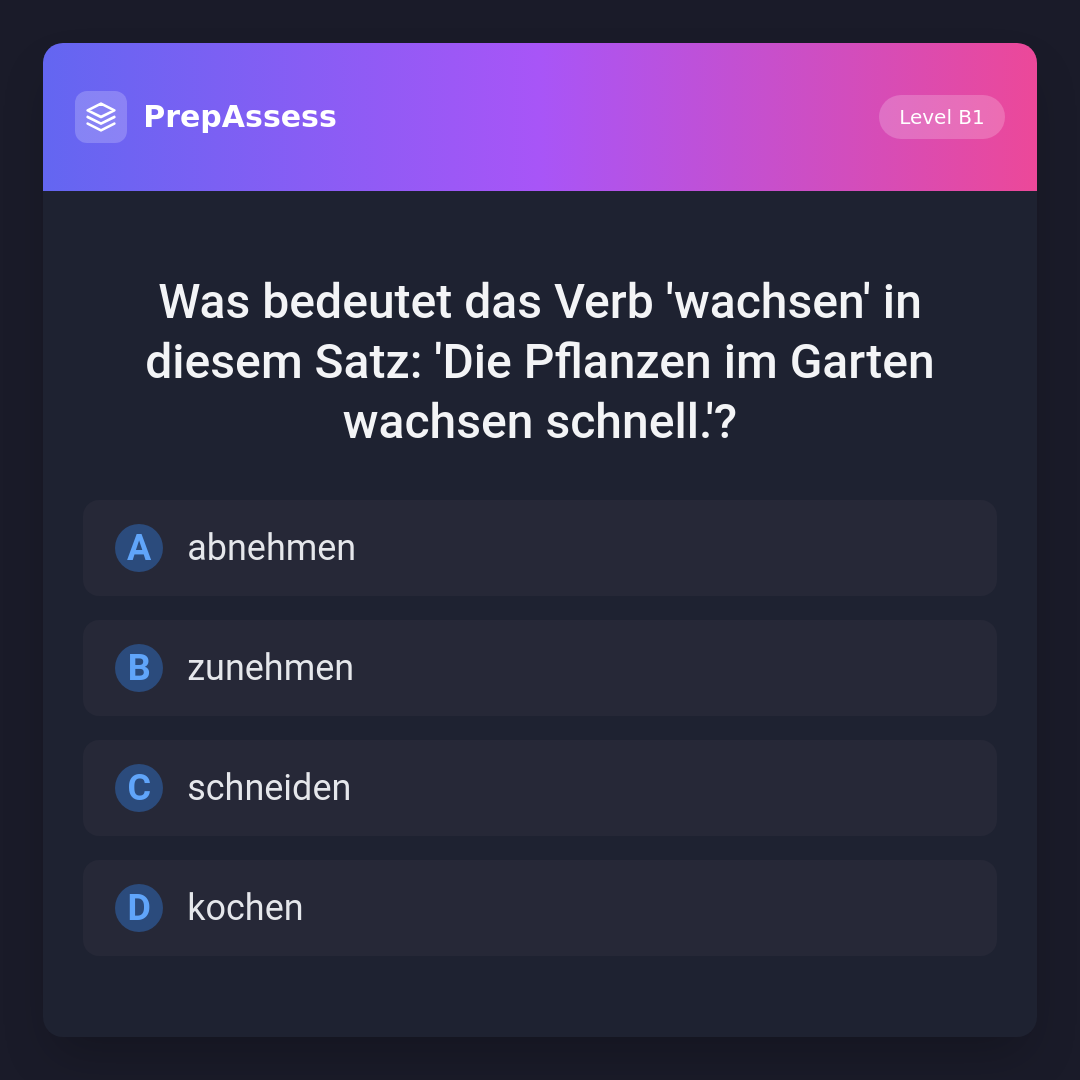 Was bedeutet das Verb 'wachsen' in diesem Satz: 'Die Pflanzen im Garten wachsen schnell.'?