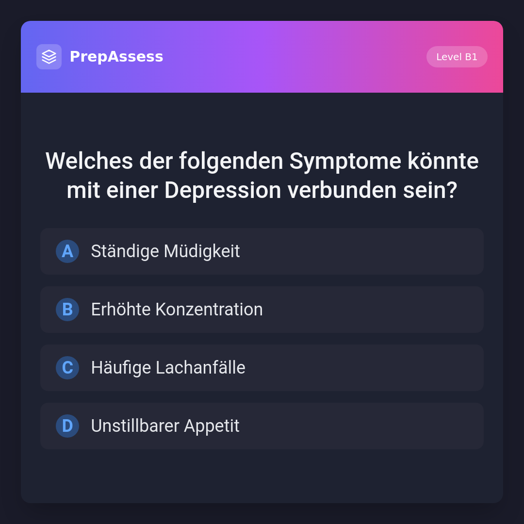 Welches der folgenden Symptome könnte mit einer Depression verbunden sein?