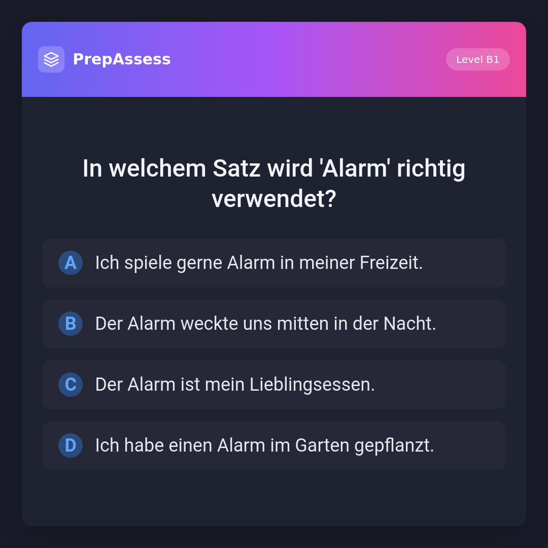 In welchem Satz wird 'Alarm' richtig verwendet?