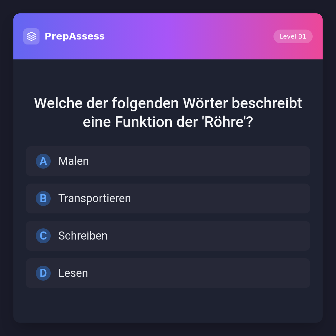 Welche der folgenden Wörter beschreibt eine Funktion der 'Röhre'?