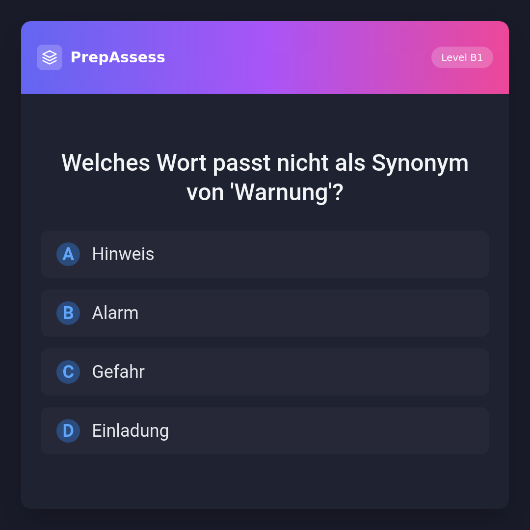 Welches Wort passt nicht als Synonym von 'Warnung'?