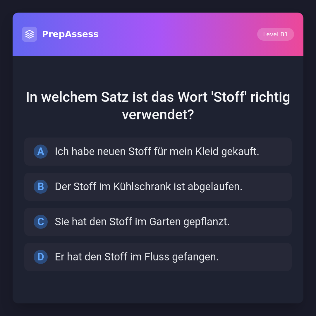 In welchem Satz ist das Wort 'Stoff' richtig verwendet?