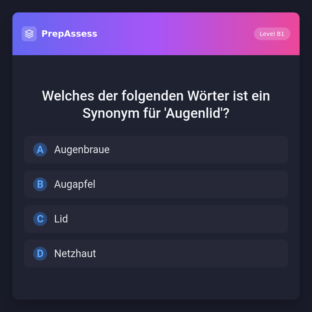 Welches der folgenden Wörter ist ein Synonym für 'Augenlid'?