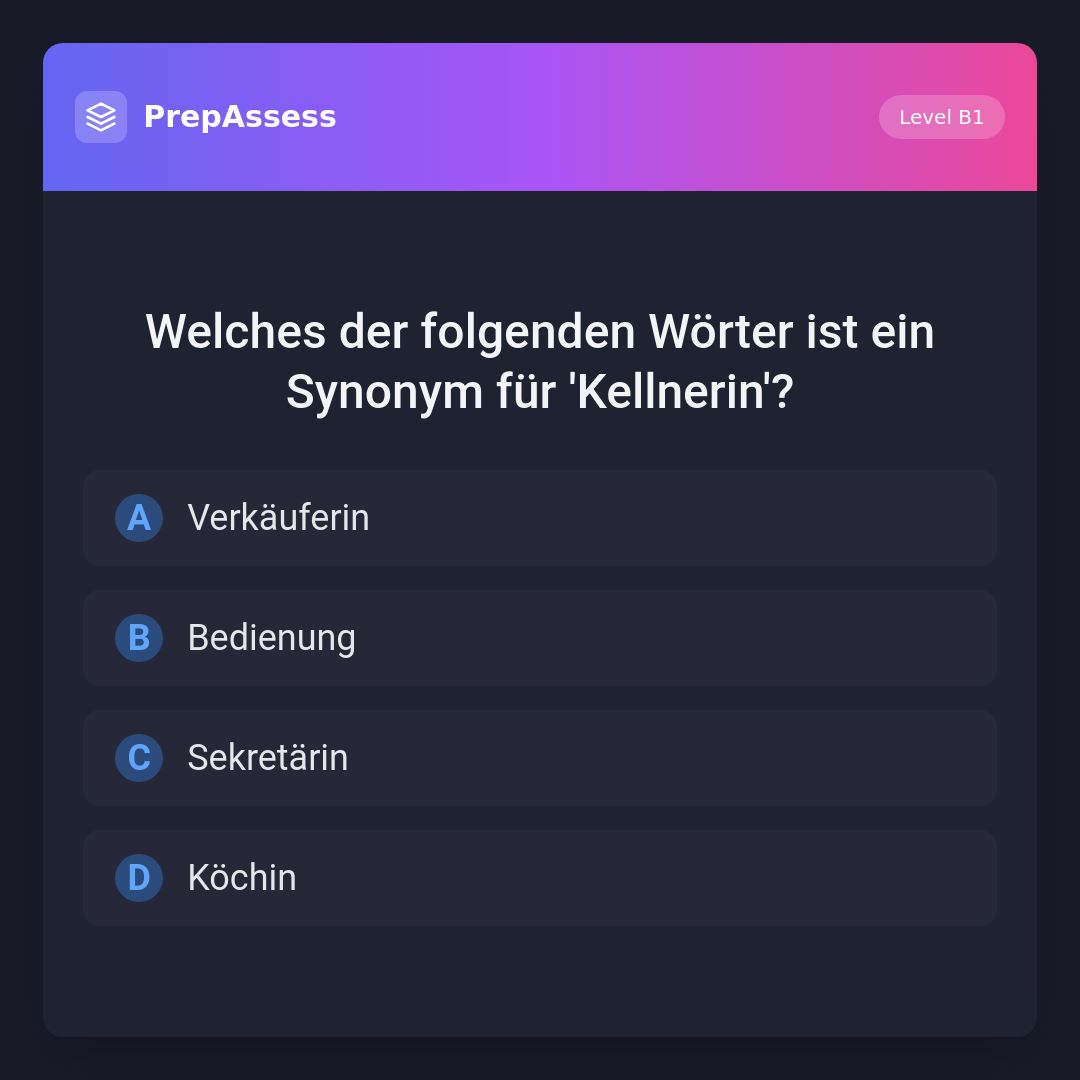Welches der folgenden Wörter ist ein Synonym für 'Kellnerin'?