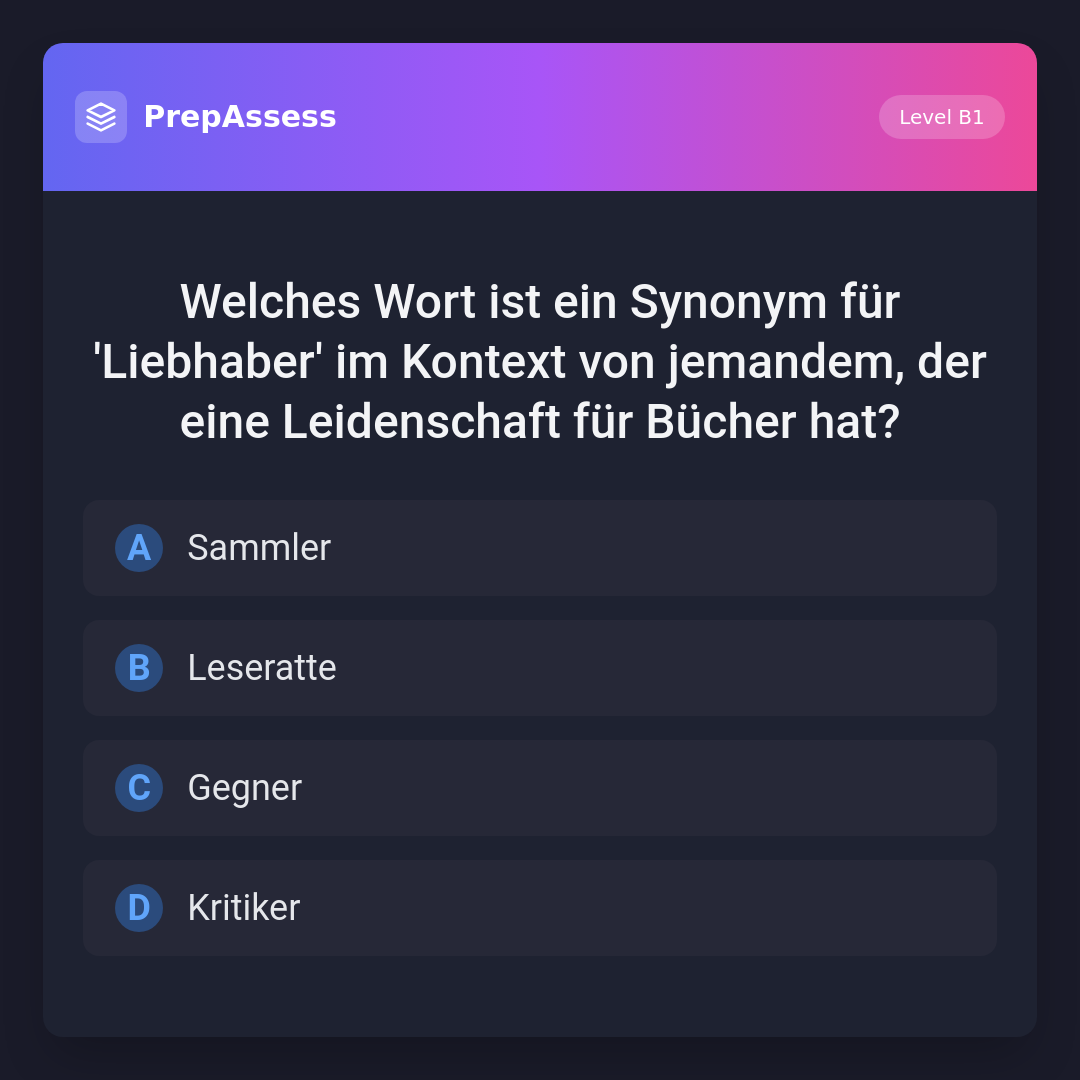 Welches Wort ist ein Synonym für 'Liebhaber' im Kontext von jemandem, der eine Leidenschaft für Bücher hat?
