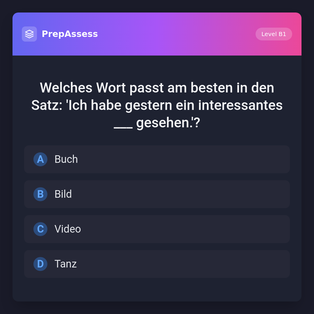 Welches Wort passt am besten in den Satz: 'Ich habe gestern ein interessantes ___ gesehen.'?
