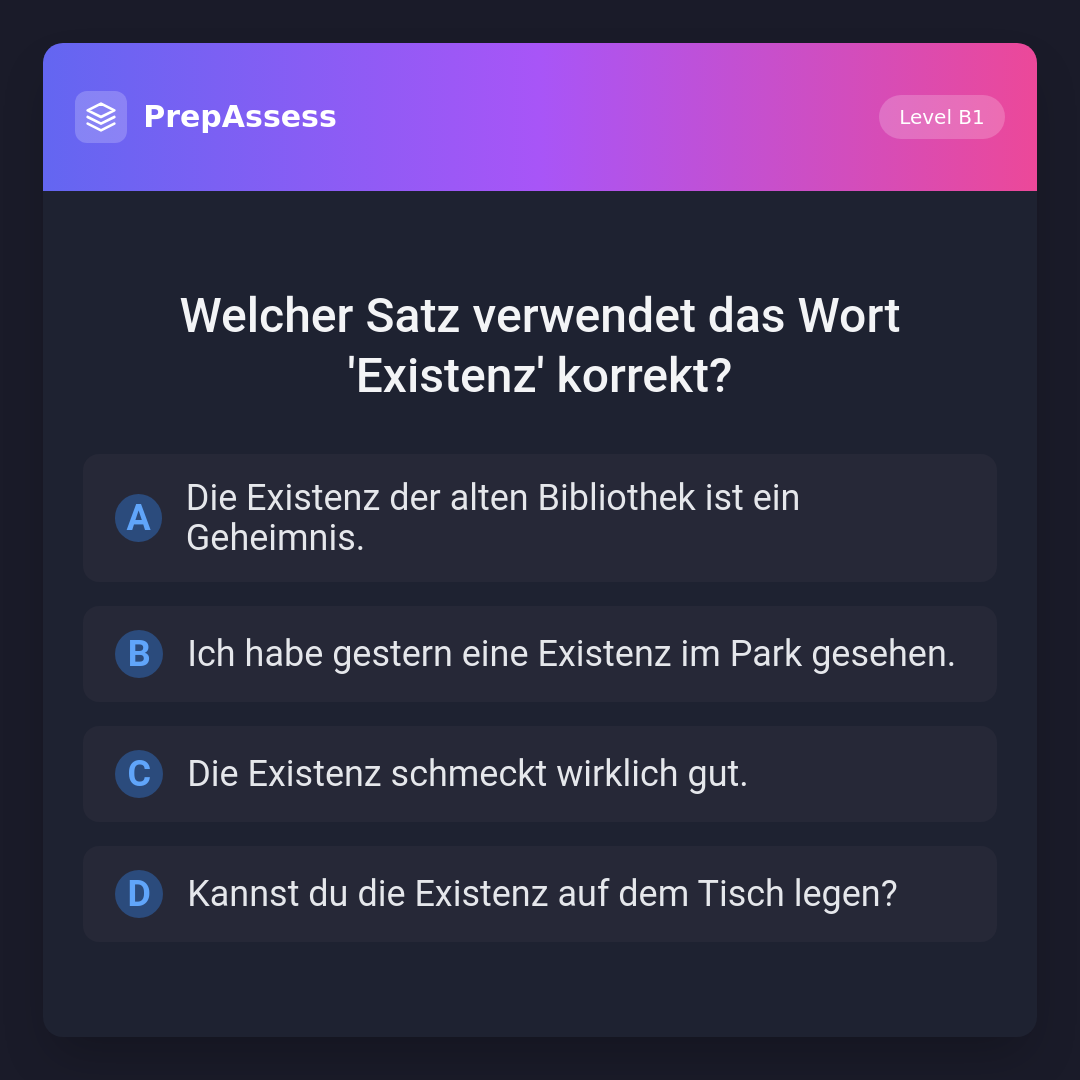 Welcher Satz verwendet das Wort 'Existenz' korrekt?