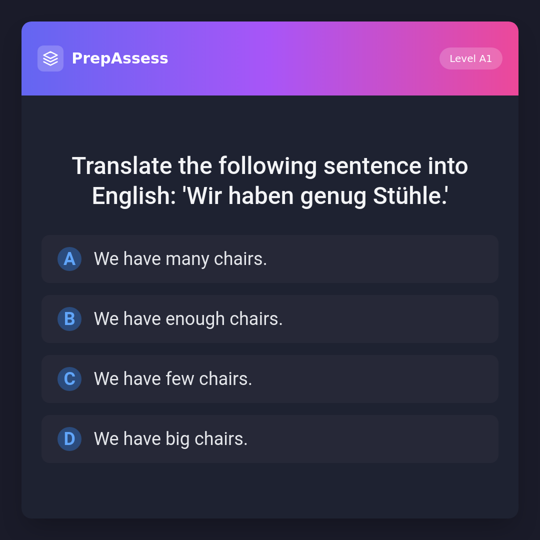Translate the following sentence into English: 'Wir haben genug Stühle.'