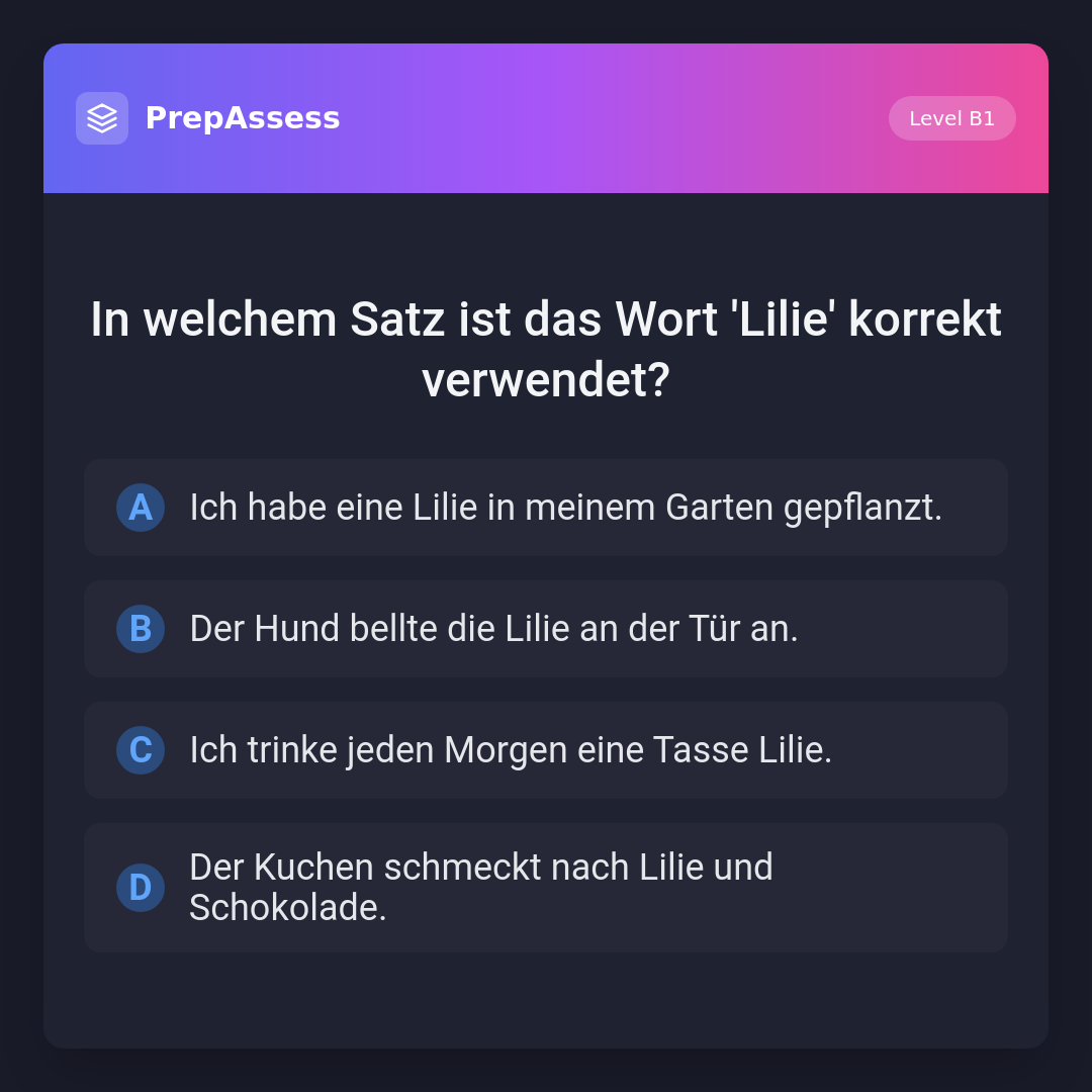 In welchem Satz ist das Wort 'Lilie' korrekt verwendet?