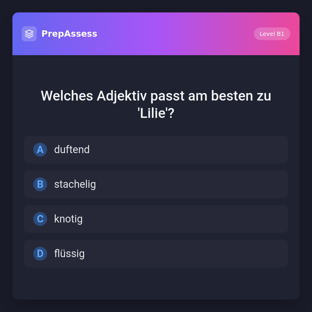Welches Adjektiv passt am besten zu 'Lilie'?