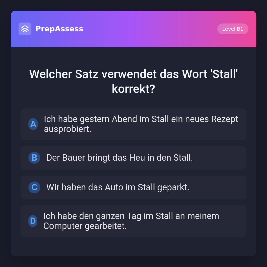 Welcher Satz verwendet das Wort 'Stall' korrekt?