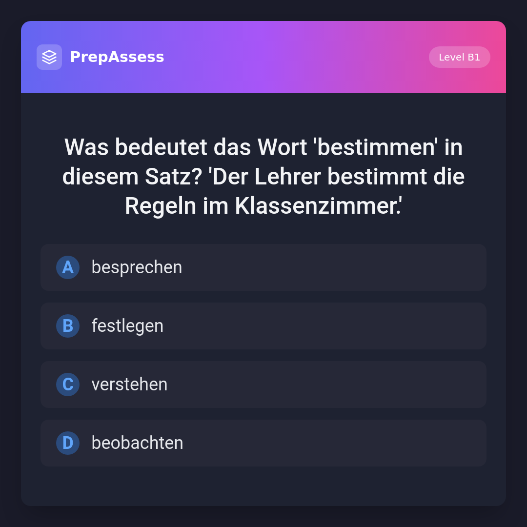 Was bedeutet das Wort 'bestimmen' in diesem Satz? 'Der Lehrer bestimmt die Regeln im Klassenzimmer.'
