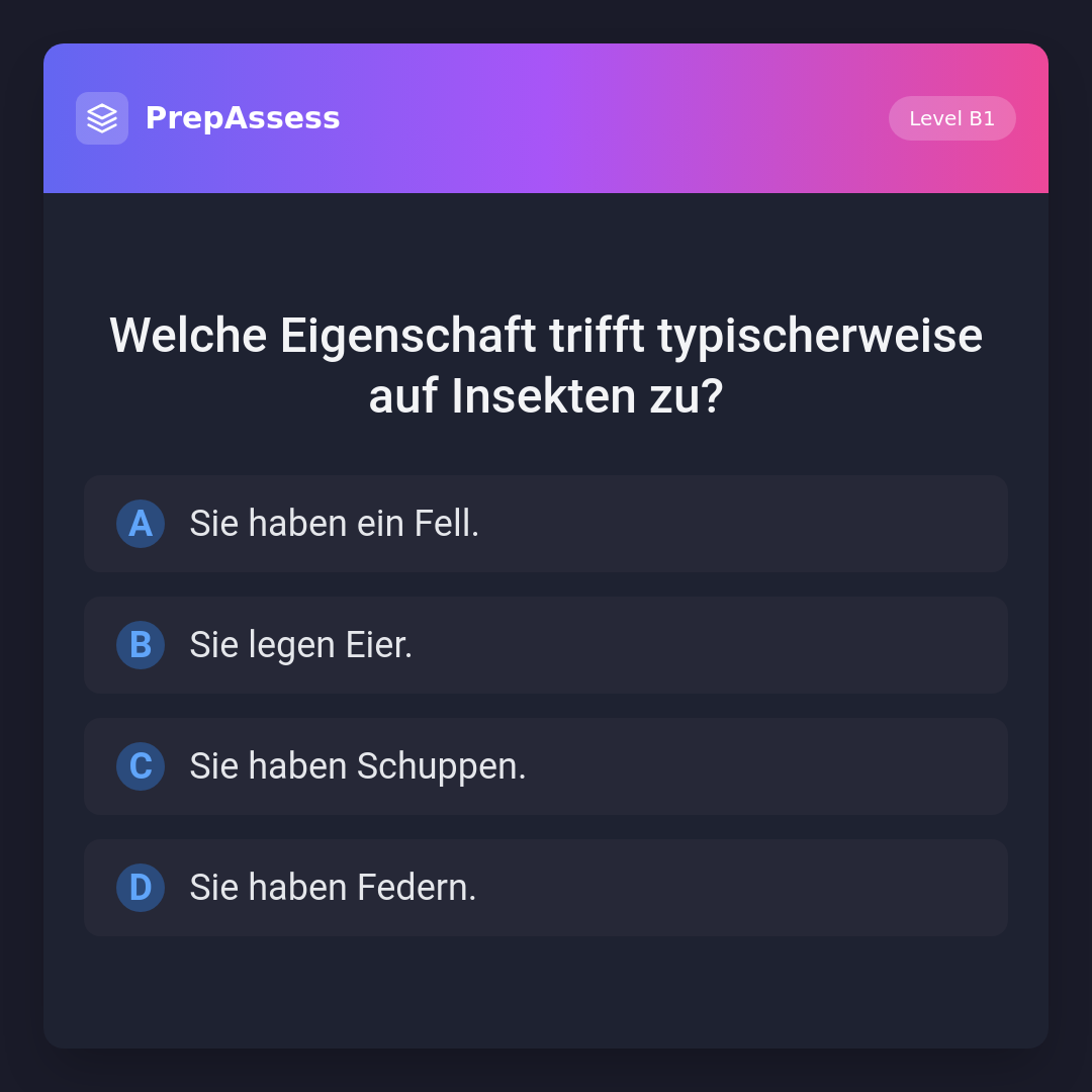 Welche Eigenschaft trifft typischerweise auf Insekten zu?