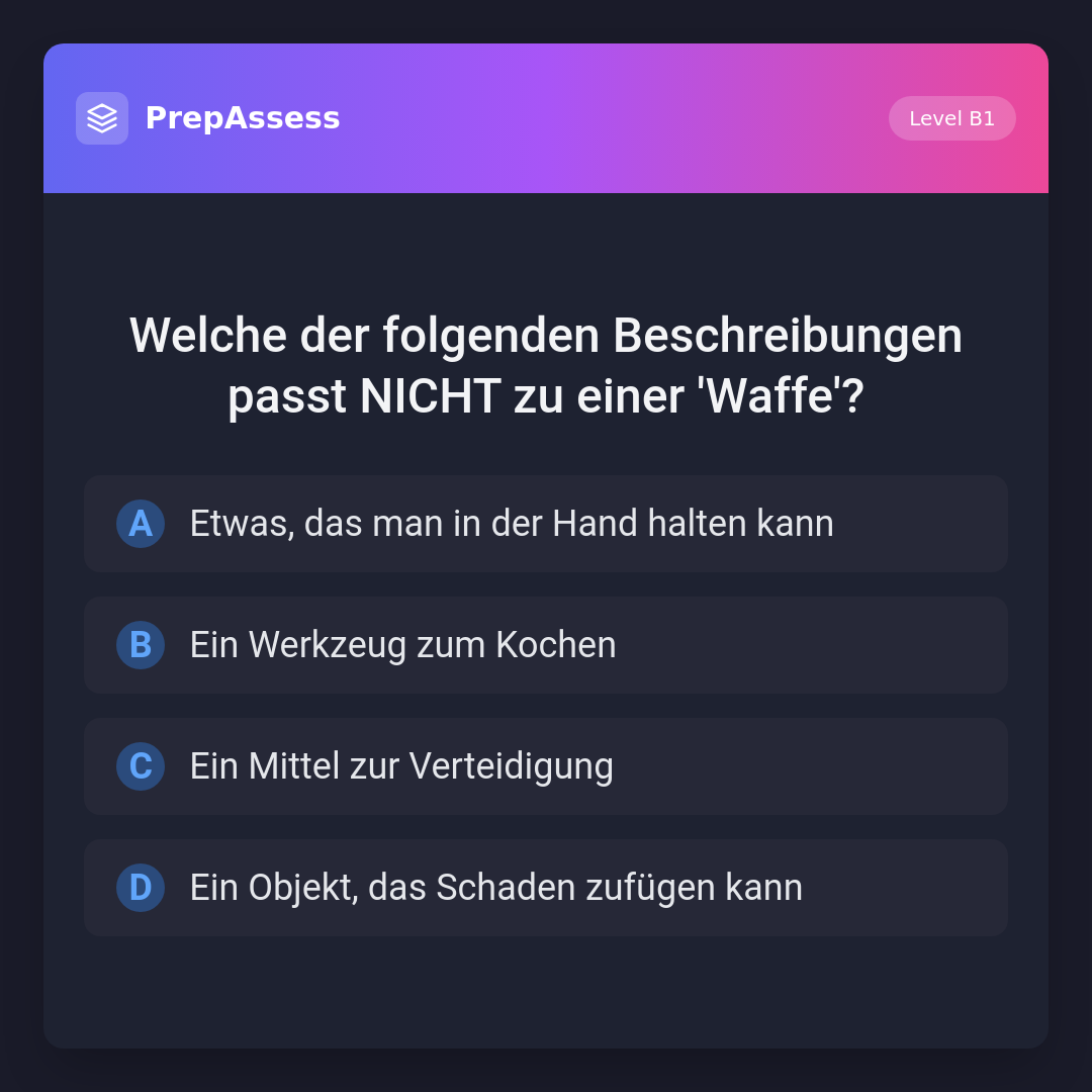 Welche der folgenden Beschreibungen passt NICHT zu einer 'Waffe'?