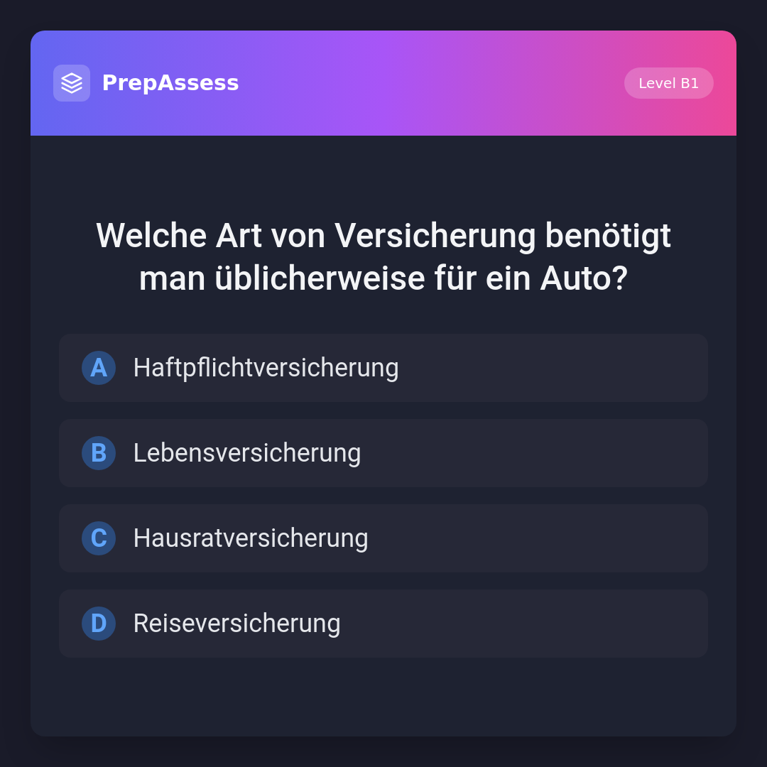 Welche Art von Versicherung benötigt man üblicherweise für ein Auto?