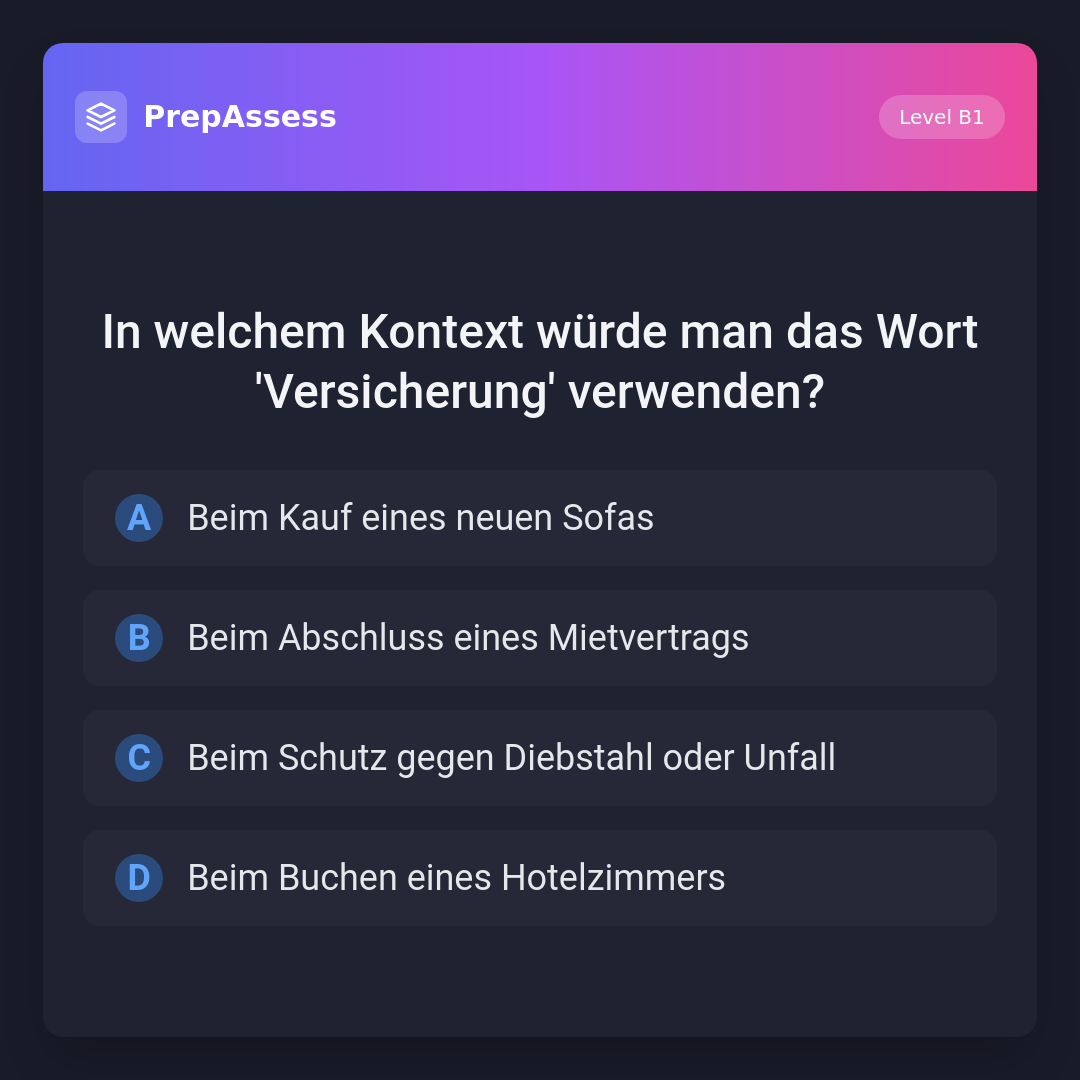 In welchem Kontext würde man das Wort 'Versicherung' verwenden?