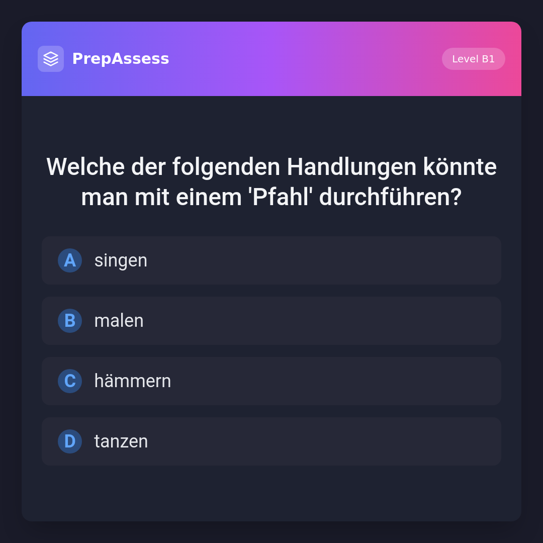 Welche der folgenden Handlungen könnte man mit einem 'Pfahl' durchführen?