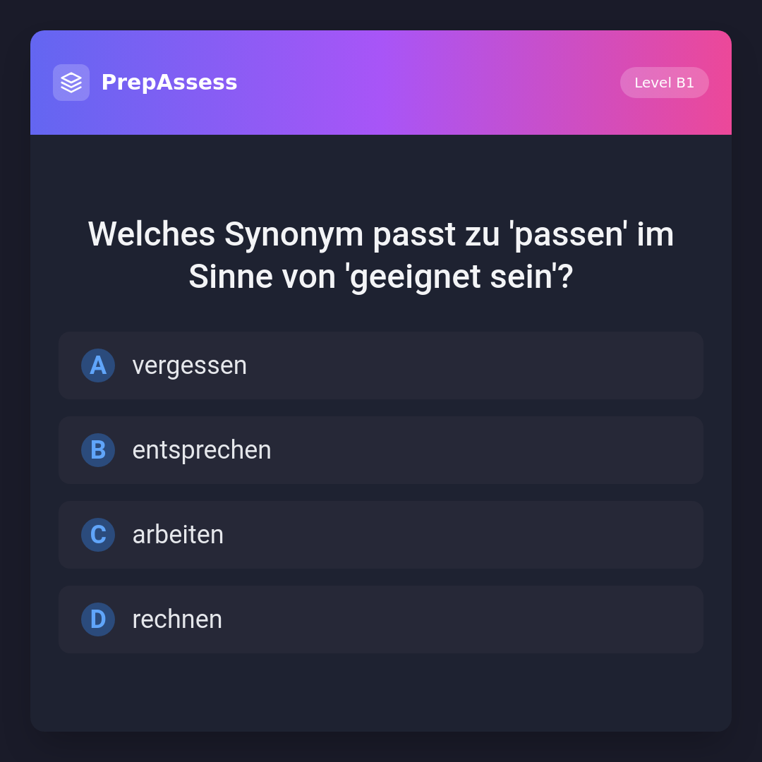 Welches Synonym passt zu 'passen' im Sinne von 'geeignet sein'?