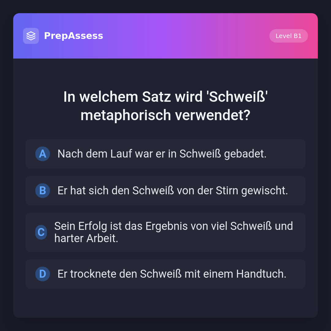 In welchem Satz wird 'Schweiß' metaphorisch verwendet?