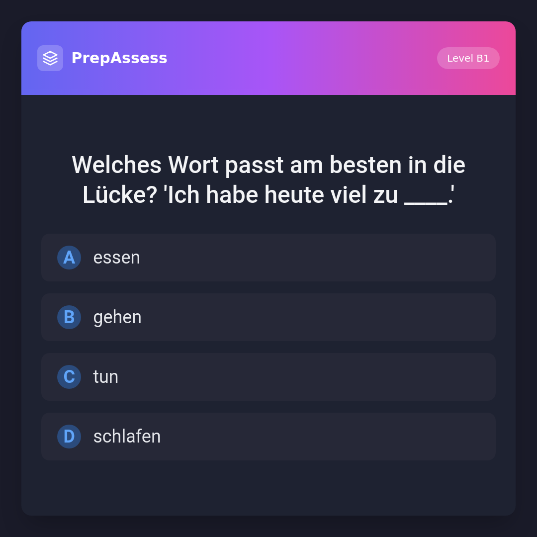 Welches Wort passt am besten in die Lücke? 'Ich habe heute viel zu ____.'