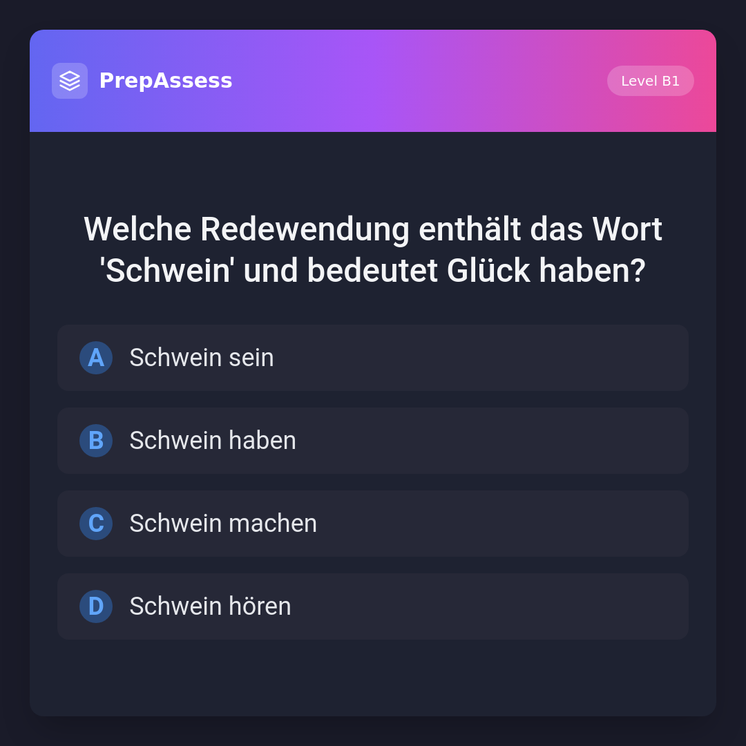 Welche Redewendung enthält das Wort 'Schwein' und bedeutet Glück haben?