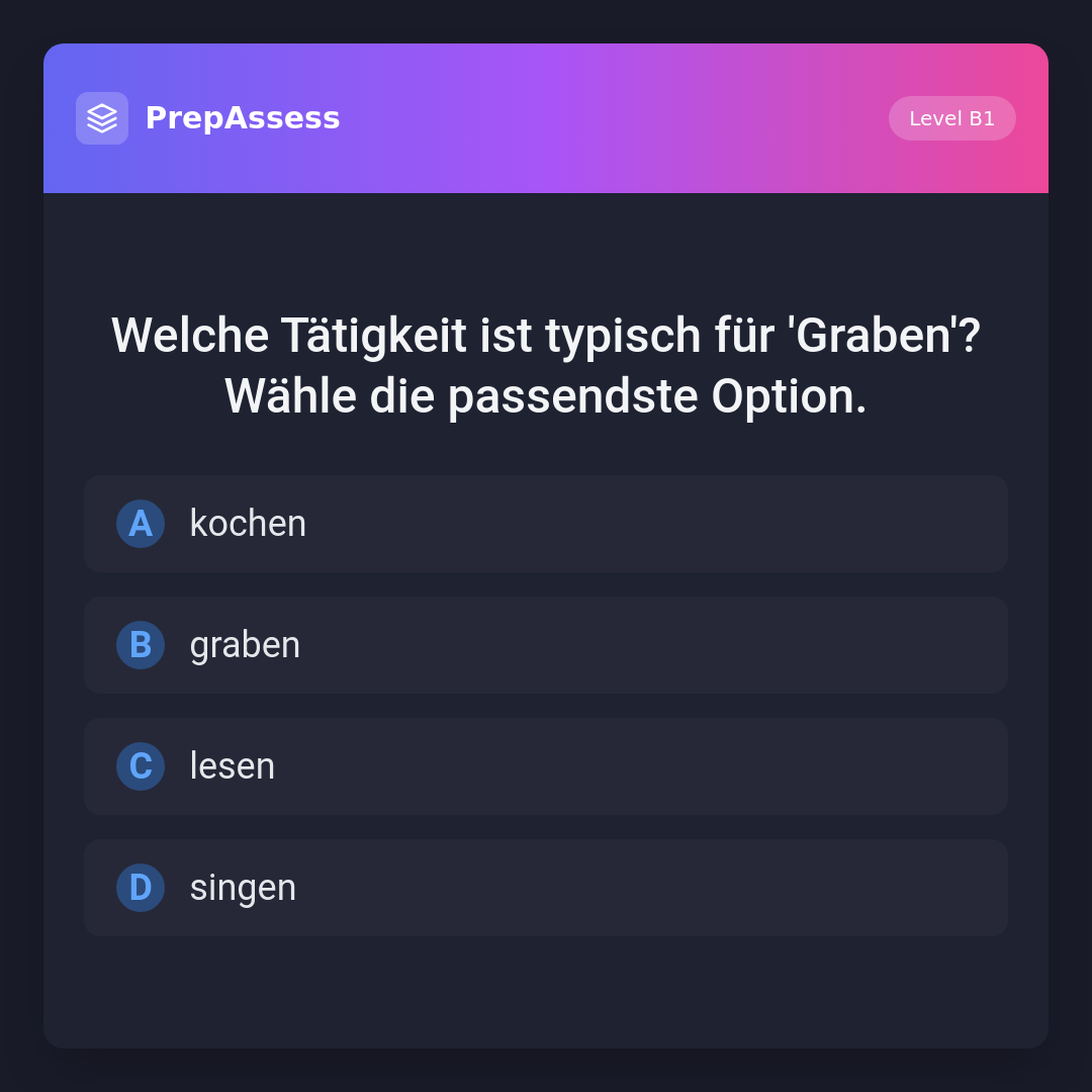 Welche Tätigkeit ist typisch für 'Graben'? Wähle die passendste Option.