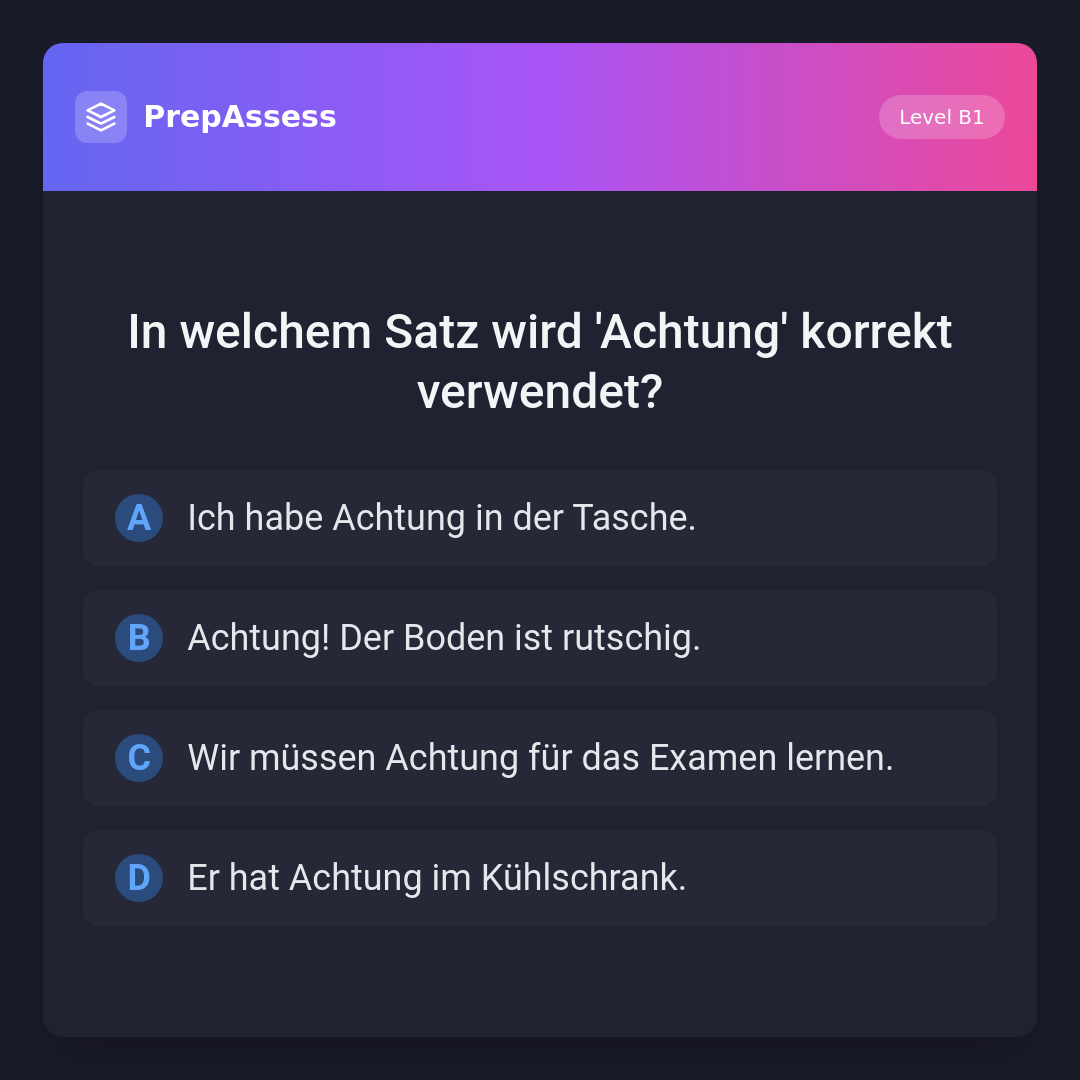 In welchem Satz wird 'Achtung' korrekt verwendet?