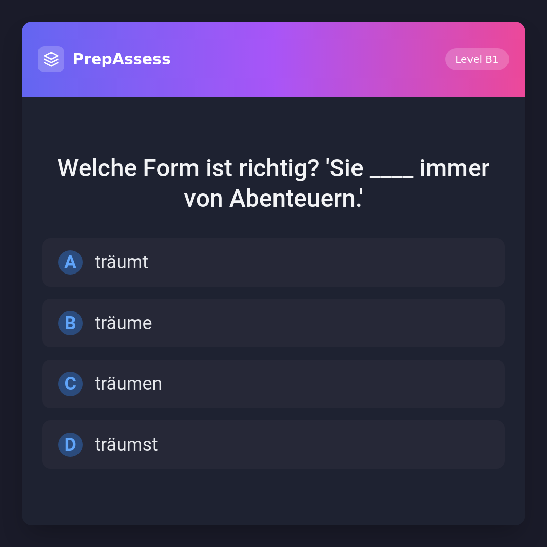 Welche Form ist richtig? 'Sie ____ immer von Abenteuern.'