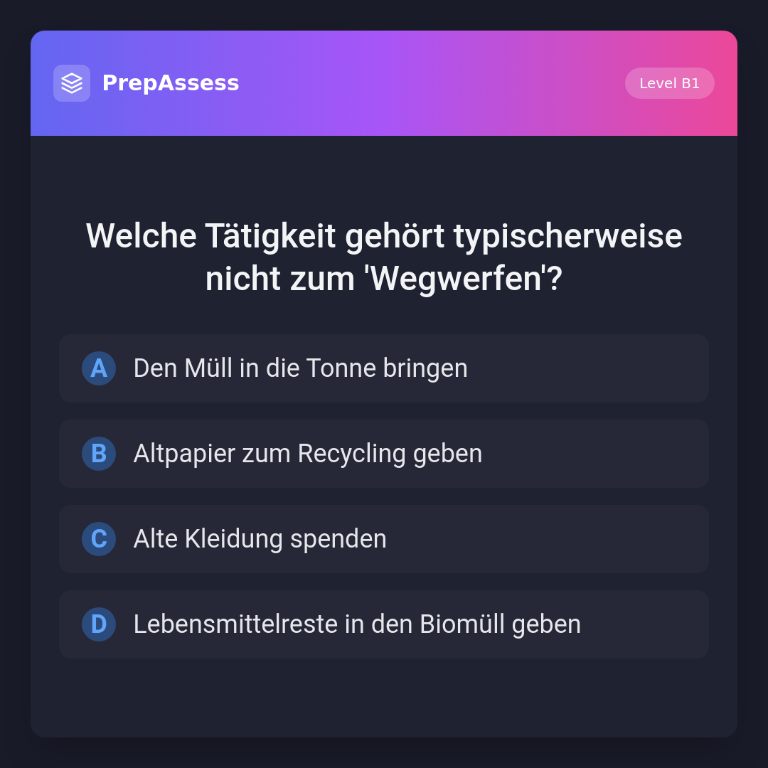 Welche Tätigkeit gehört typischerweise nicht zum 'Wegwerfen'?