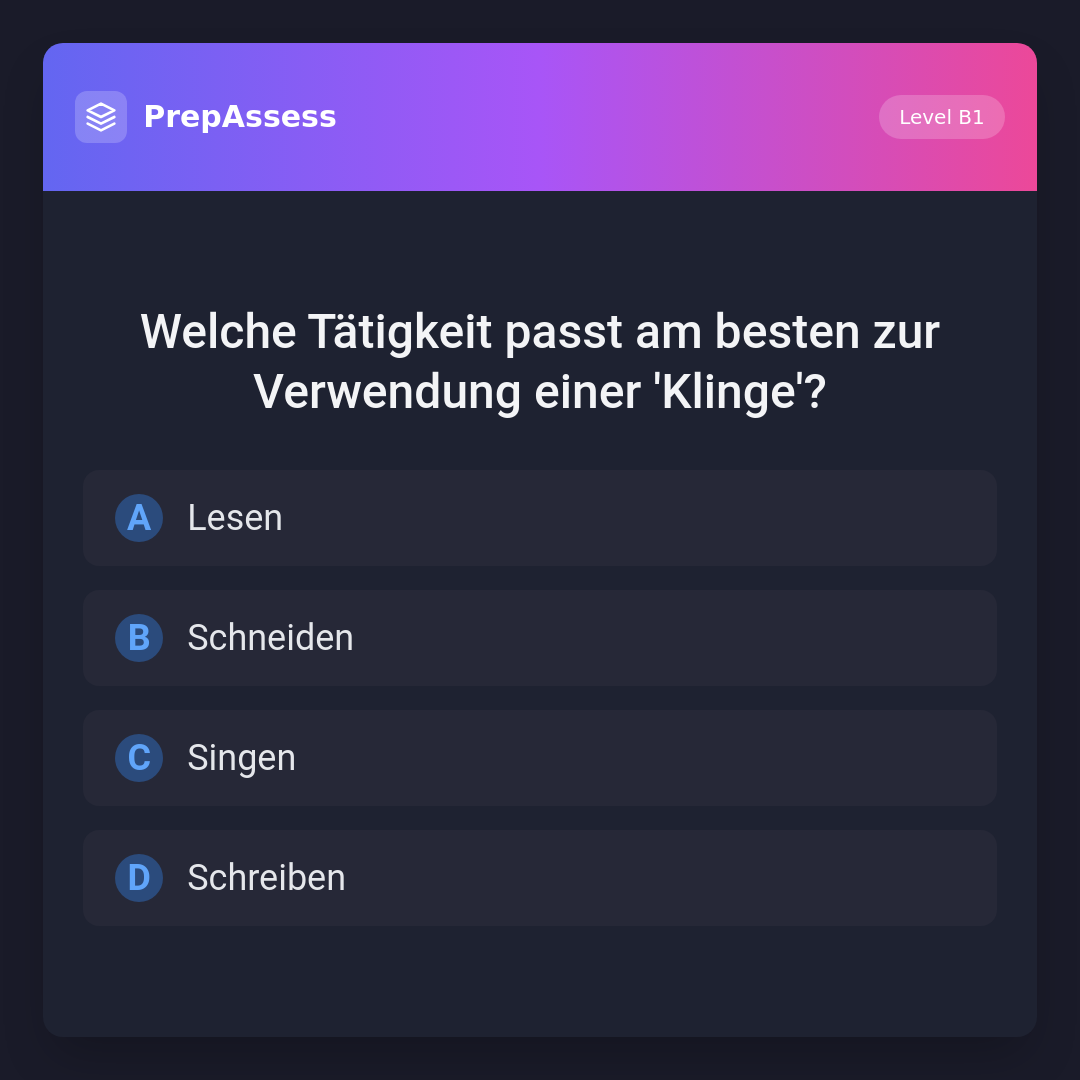 Welche Tätigkeit passt am besten zur Verwendung einer 'Klinge'?