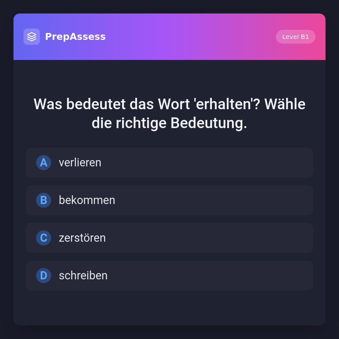 Was bedeutet das Wort 'erhalten'? Wähle die richtige Bedeutung.