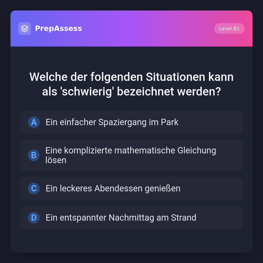 Welche der folgenden Situationen kann als 'schwierig' bezeichnet werden?