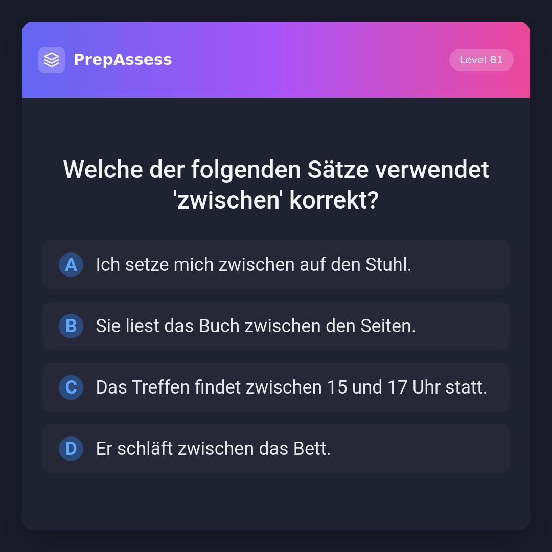 Welche der folgenden Sätze verwendet 'zwischen' korrekt?