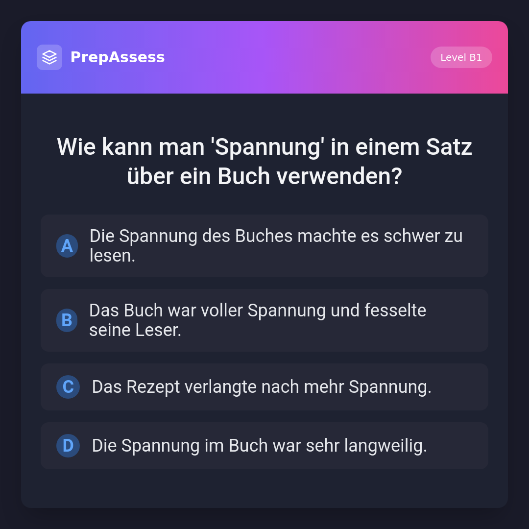 Wie kann man 'Spannung' in einem Satz über ein Buch verwenden?