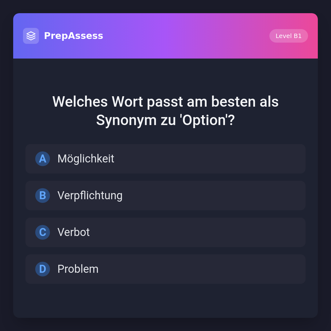 Welches Wort passt am besten als Synonym zu 'Option'?