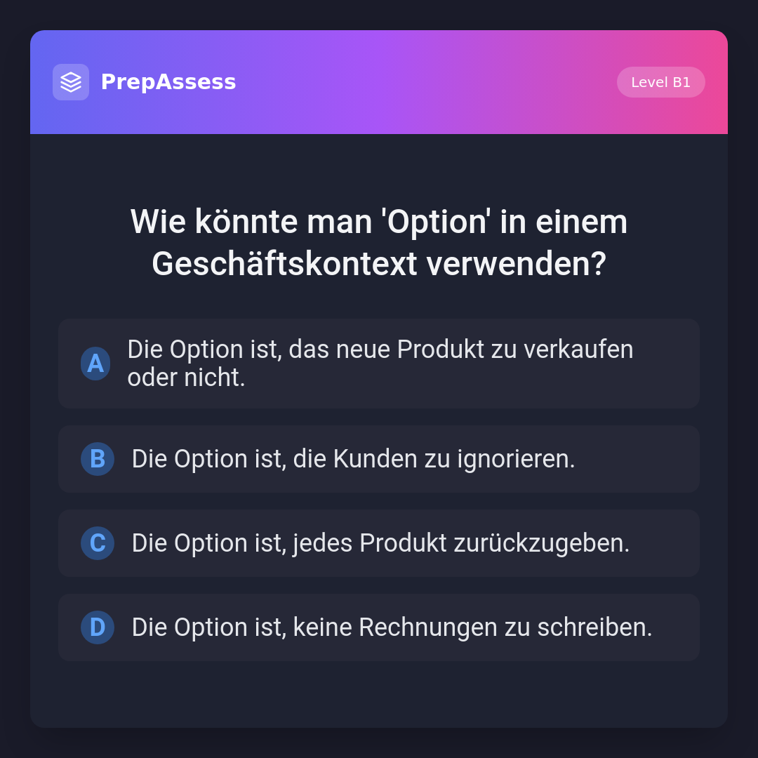 Wie könnte man 'Option' in einem Geschäftskontext verwenden?
