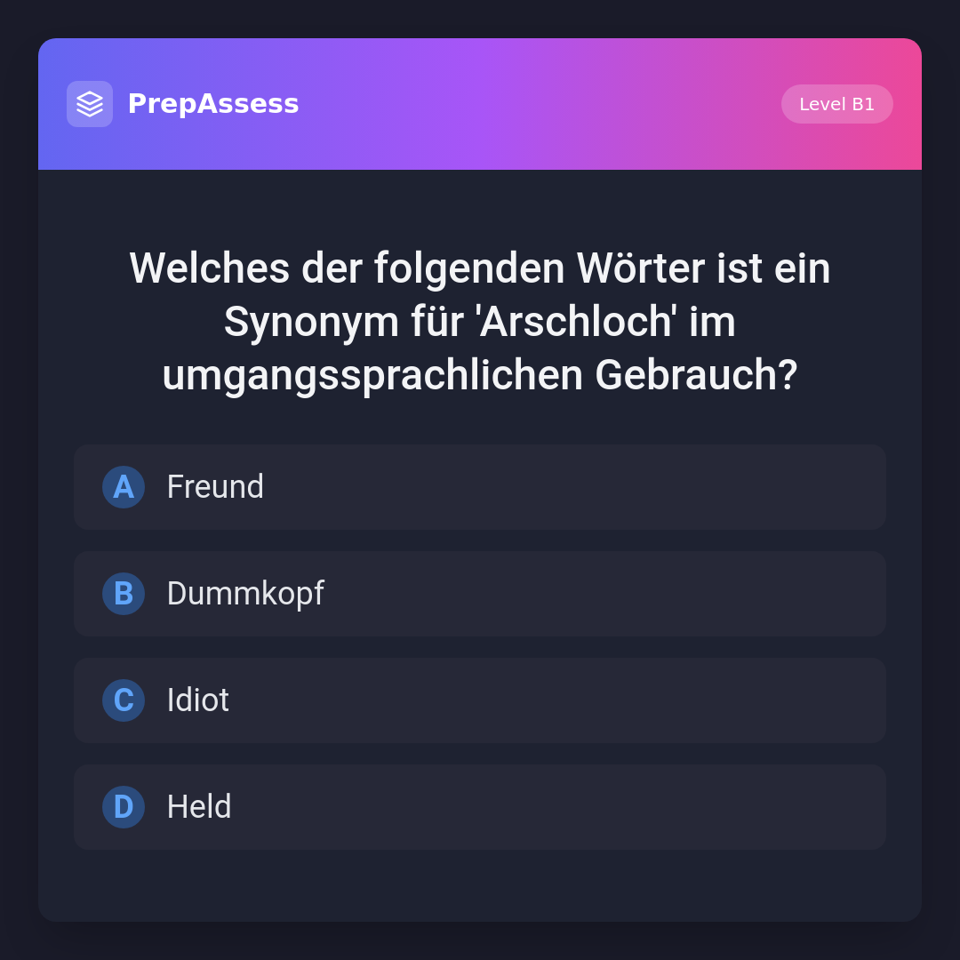 Welches der folgenden Wörter ist ein Synonym für 'Arschloch' im umgangssprachlichen Gebrauch?