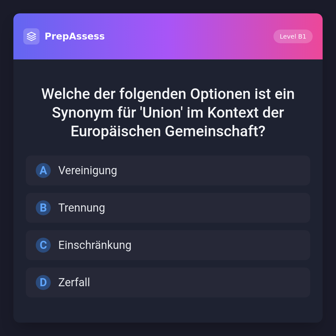 Welche der folgenden Optionen ist ein Synonym für 'Union' im Kontext der Europäischen Gemeinschaft?