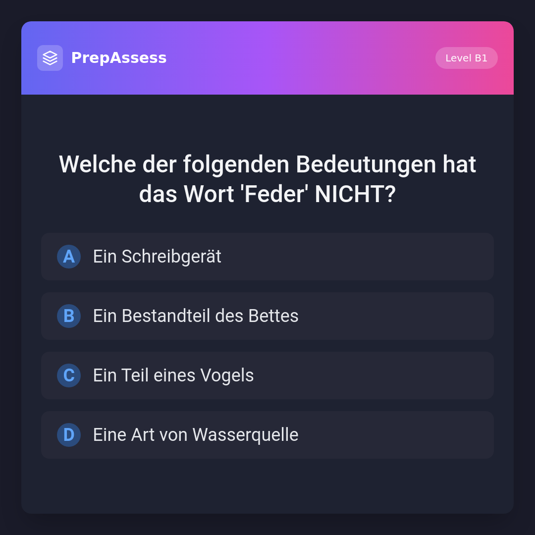 Welche der folgenden Bedeutungen hat das Wort 'Feder' NICHT?