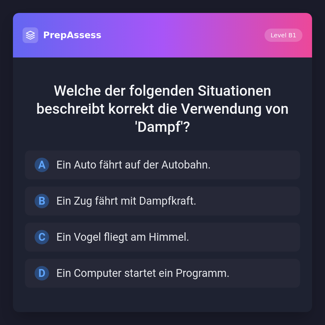 Welche der folgenden Situationen beschreibt korrekt die Verwendung von 'Dampf'?