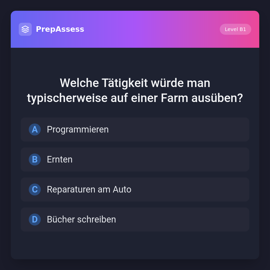 Welche Tätigkeit würde man typischerweise auf einer Farm ausüben?